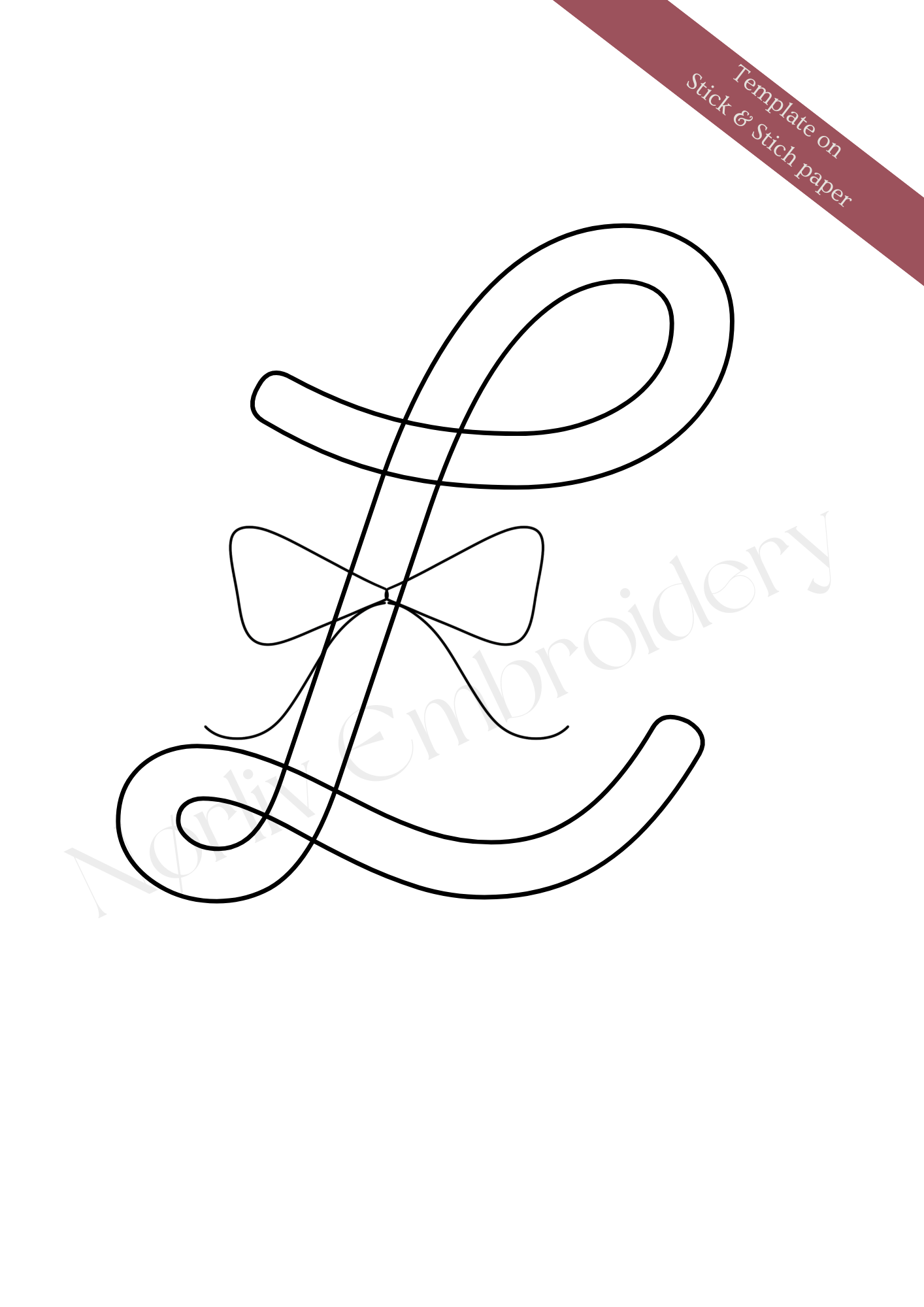 Dit bogstav med en julesløjfe som skabelon på vandopløselig broderipapir – Til dig, der allerede har grejet, men mangler et nyt design