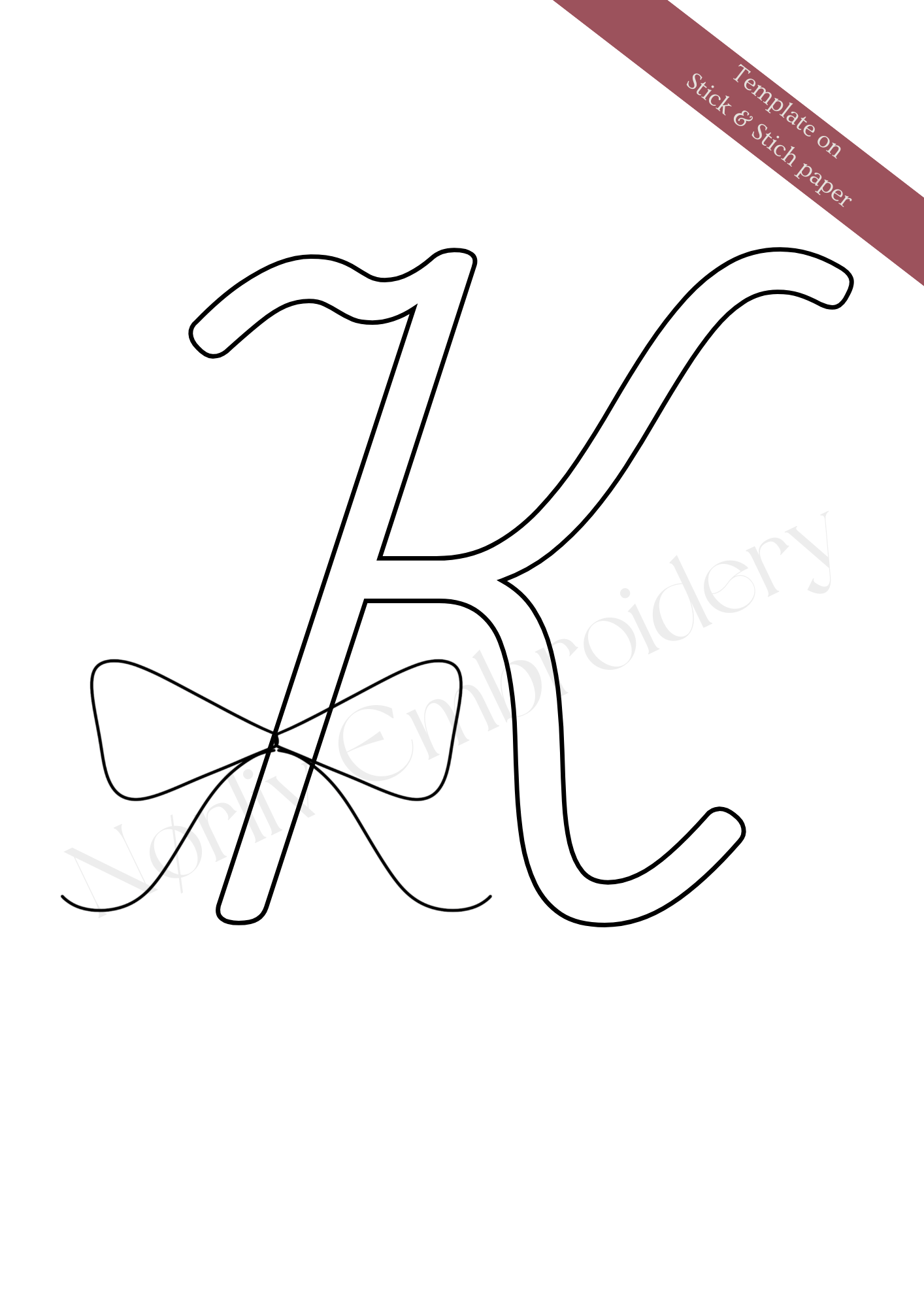 Med denne skabelon får du dit bogstav efter valg med en julesløjfe på en skabelon klar til overførsel – perfekt til at tilføje på en sweater, en mulepose eller noget helt tredje.
