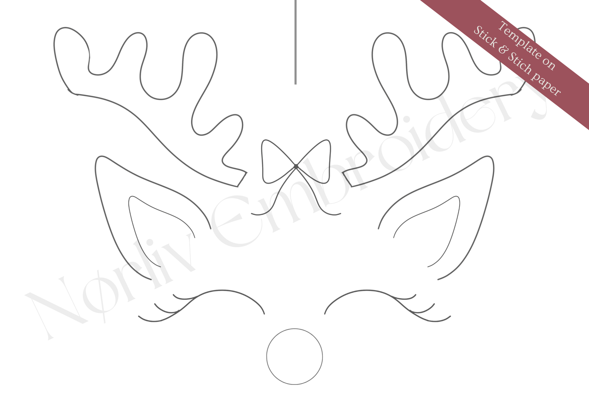 Rudolph eller Rudolfine skabelon på vandopløselig broderipapir – Til dig, der allerede har grejet, men mangler et nyt design